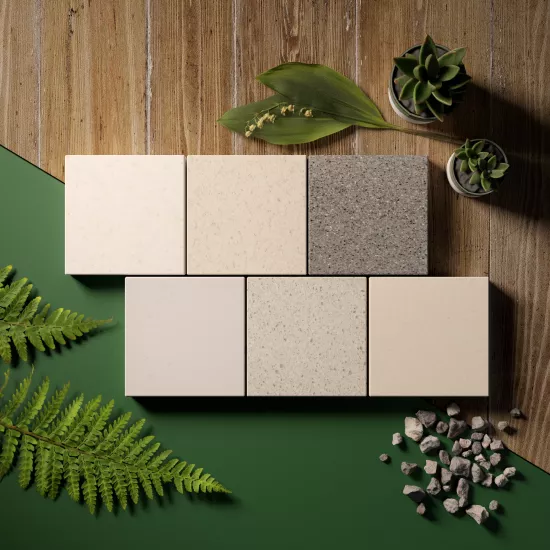 Neben den Kollektionen Aurora und Intense Ultra umfasst die „vertikale Materialbibliothek“ auch die Palette der umweltfreundlichen Recycled Colours, die bis zu 16 Prozent recyceltes Material enthalten. Diese Kollektion ist mit dem Greenguard Gold Indoor Air Quality-Zertifikat ausgezeichnet und erfüllt die Anforderungen des LEED® (Leadership in Energy and Environmental Design) für nachhaltiges Design.