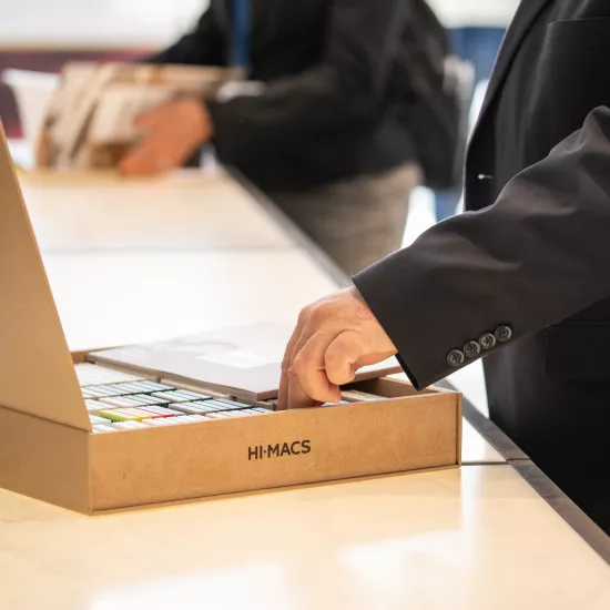 | Verwendetes Material | HIMACS Aurora, HIMACS Intense Ultra, HIMACS Recycled Colours |