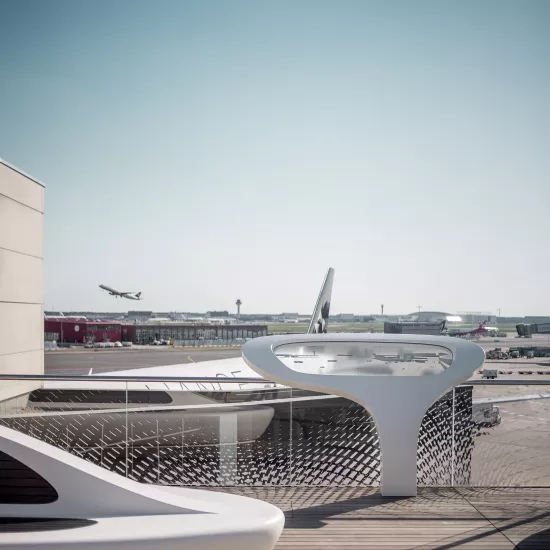 Bitte anschnallen! Die Dachterrasse des Flughafens Frankfurt hebt (sich) ab mit Möbeln aus HIMACS