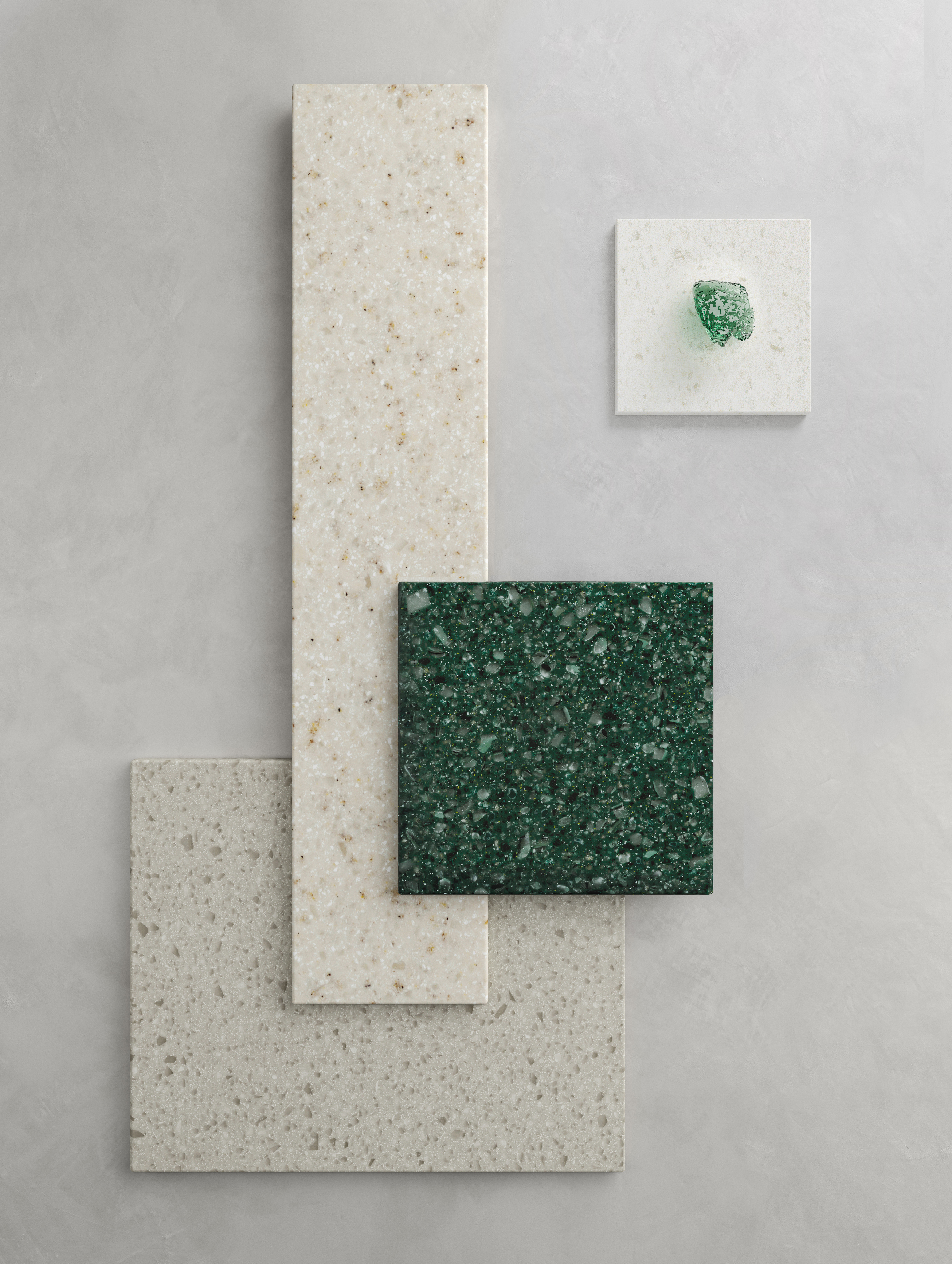 The large particles of the Volcanics shades add a sense of style to any design. When used on a large scale the result is a dramatic showpiece. Three colours from the Volcanics range contain recycled content for an environmentally friendly solution with a luxurious natural stone look.