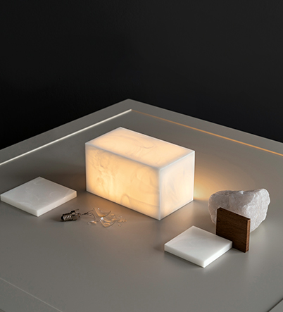 La colección Aurora, evolución de la colección Marmo, materializa la belleza suave y misteriosa de las vetas del mármol natural, y se inspira en las auroras boreales de las regiones polares.