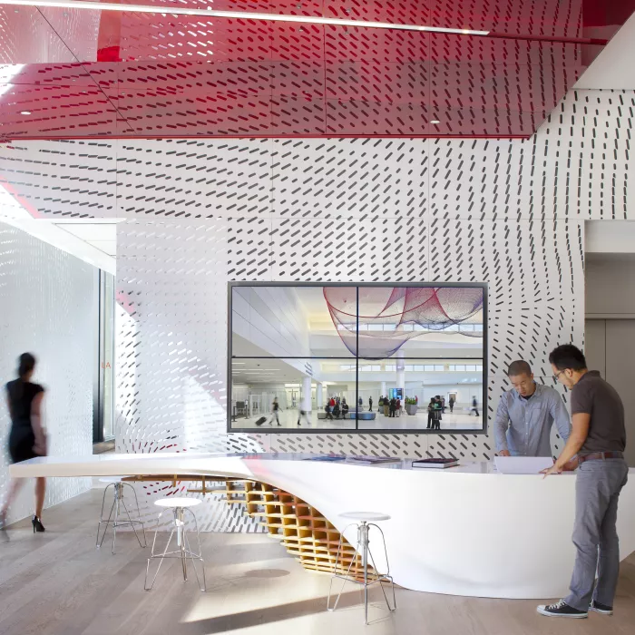 El estudio de arquitectura 16k ha renovado completamente las áreas de bienvenida y recepción, la sala de reuniones, la cafetería, el restaurante y el